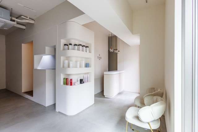 京都市内に新しくオープンした「TUKIヘアーサロン」の店舗内装を、古川工務店が担当しました。施工前のスケルトン状態から丁寧に工程を進め、優しい照明と曲線を活かしたデザインで、温かみのある心地よい空間を実現。セット面は半個室風に配置し、訪れるお客様が落ち着いて過ごせる設計に。シャンプーブースは間接照明とダークカラーで統一し、リラクゼーション空間としての魅力も高めています。